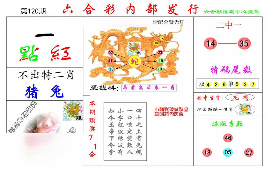 | 113期:复式连肖「牛蛇马龙」开:蛇02 |