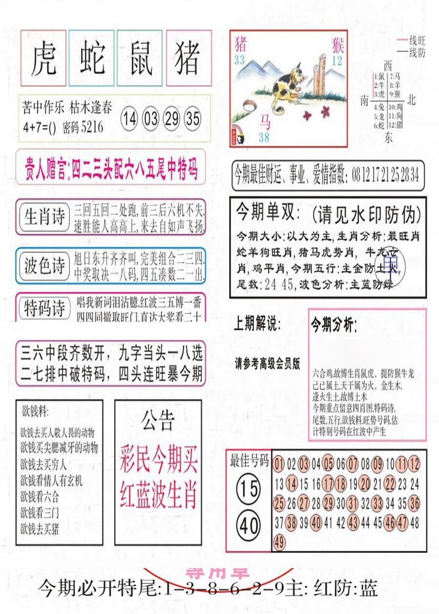 | 036期:主意跟踪九和八,六码四数定向中。 开:猪31 |